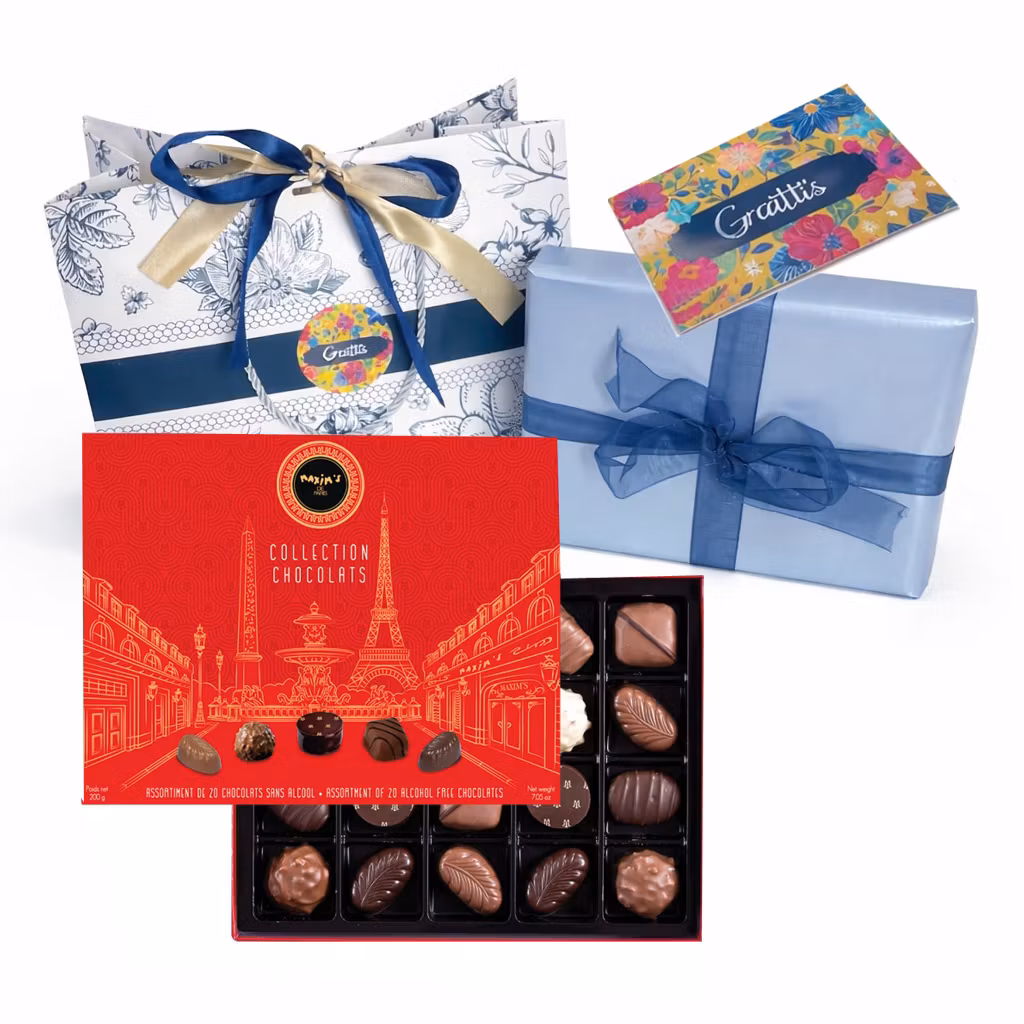 Parisisk ask, ett generöst urval av raffinerade chokladbitar… Ge efter för gourmetnjutningen och njut av alla smaker från Maxims rena kakao.
